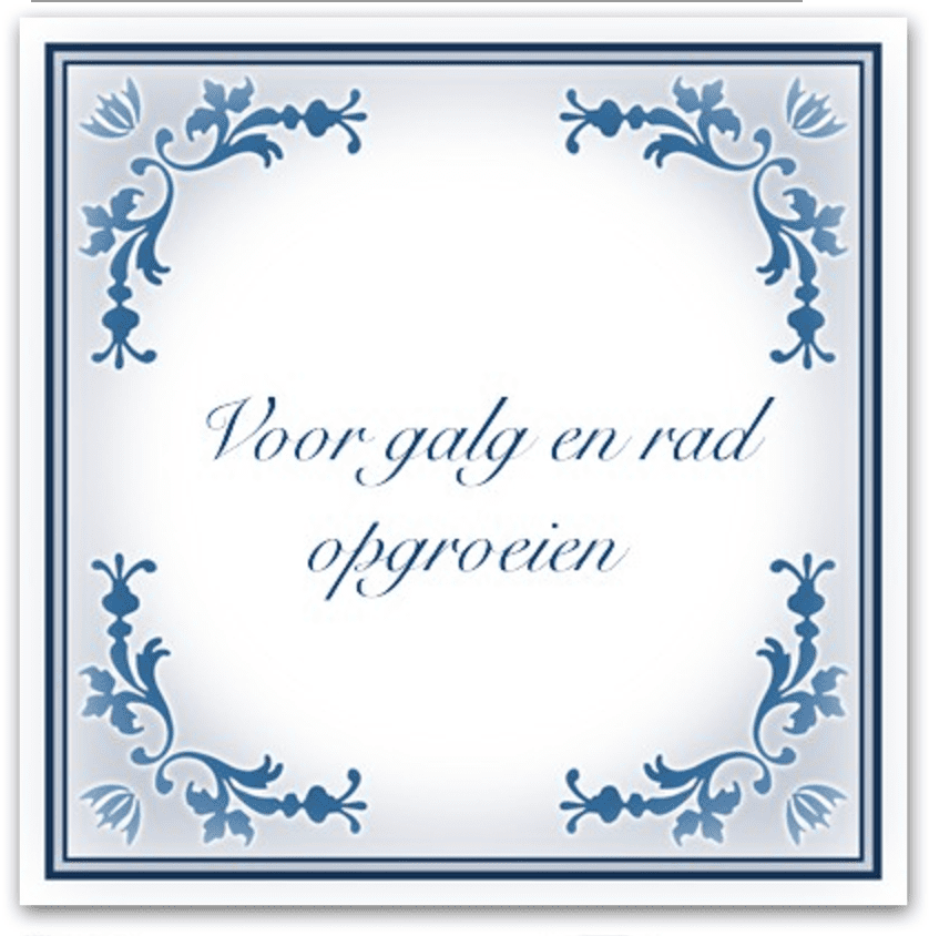 Die groeit op voor galg en rad zei mijn moeder vroeger over een jongen bij mij uit de buurt. En zoals gewoonlijk: ze had gelijk. De jongen van mijn basisschool zat nog voor zijn zestiende in jeugddententie. Voor galg en rad opgroeien is al een heel oud spreekwoord. Het komt uit de tijd dat mensen nog aan de galg werden opgehangen.
